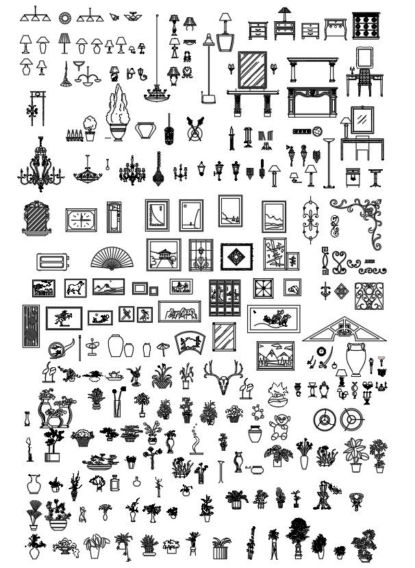 2D CAD blocks of home decor items in AutoCAD drawing, dwg file, CAD file