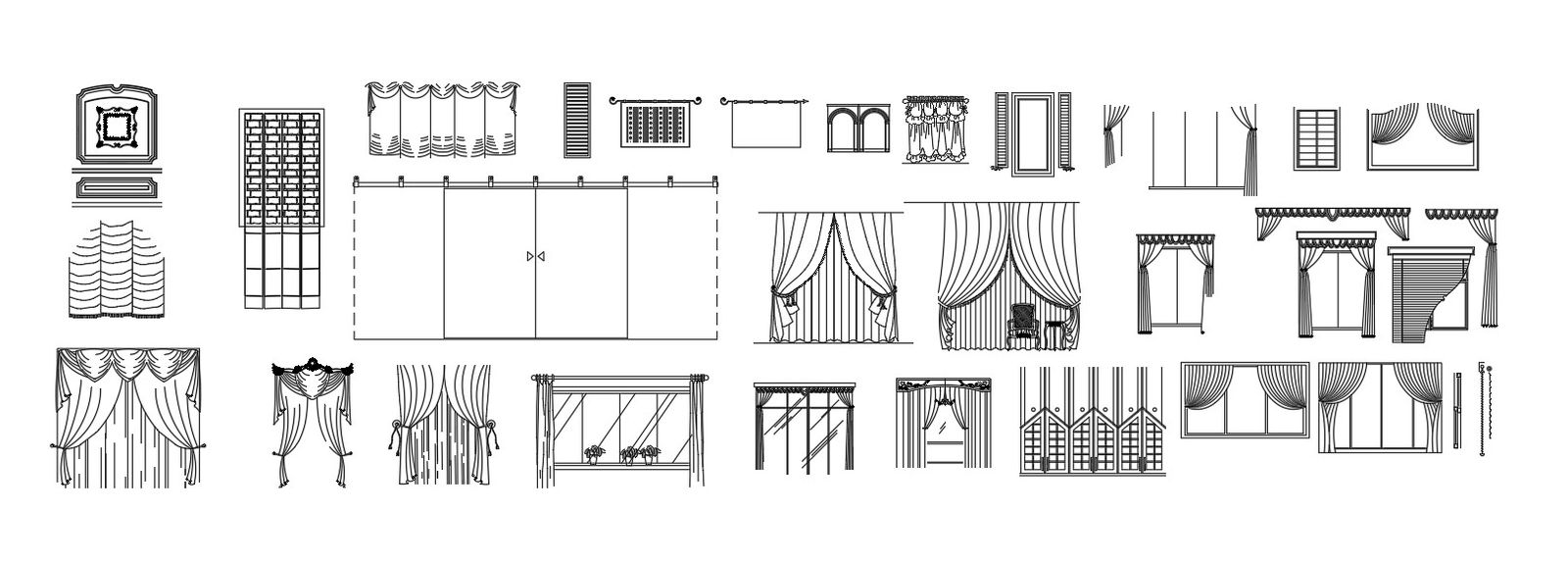 2D blocks of door, window and curtains in AutoCAD drawing, dwg file, CAD file