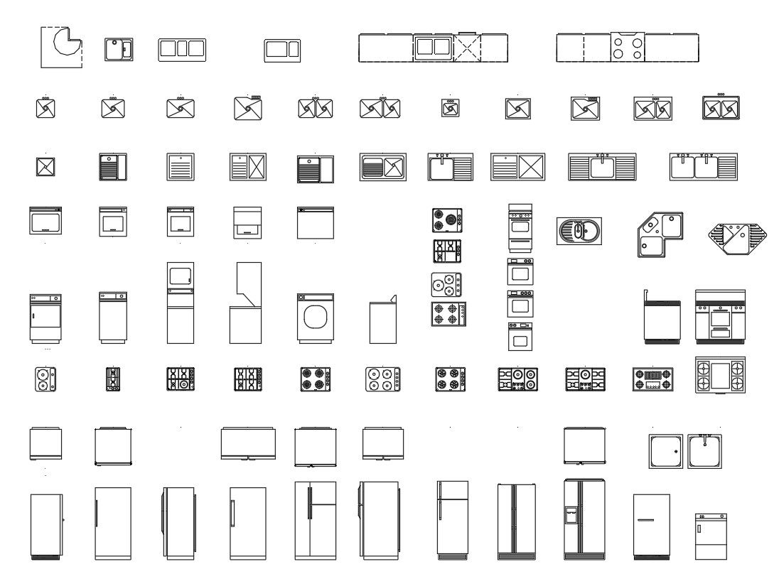 Kitchen equipments CAD blocks in AutoCAD 2D drawing, CAD file, dwg file