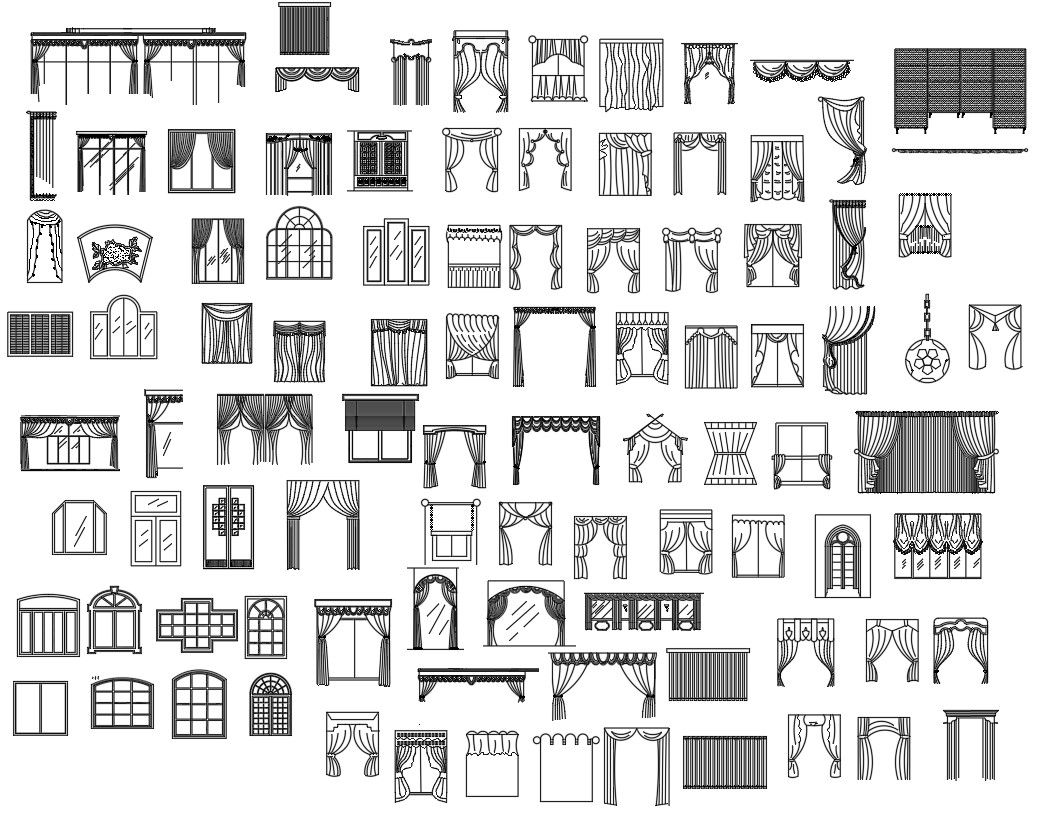 Curtains, Doors and Windows CAD Blocks AutoCAD DWG File Download