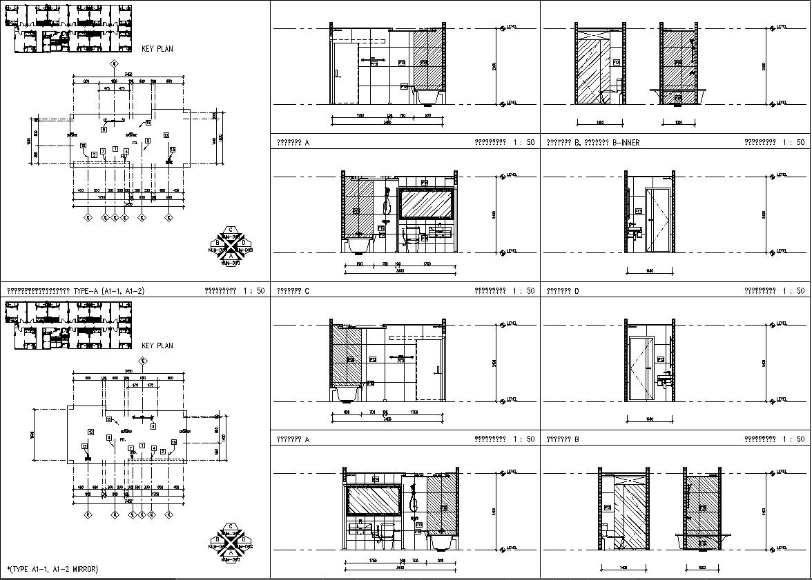 Bathroom layout plan and elevation details in AutoCAD, dwg file.
