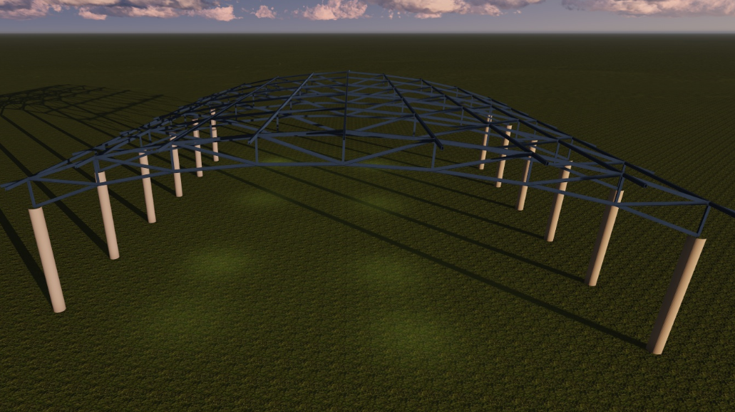 Industrial Building Roof dwg file. Find here 3d elevation design of 30x30 Industrial Building Roof project.