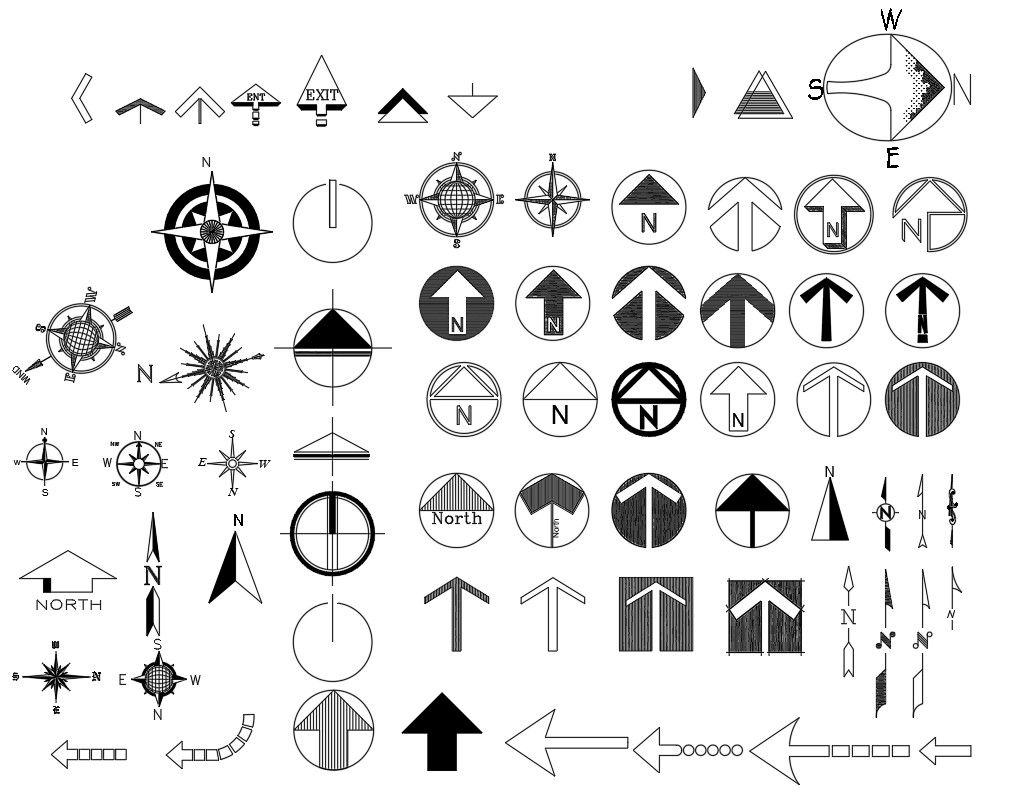North sign CAD blocks in AutoCAD 2D drawing, dwg file, CAD file