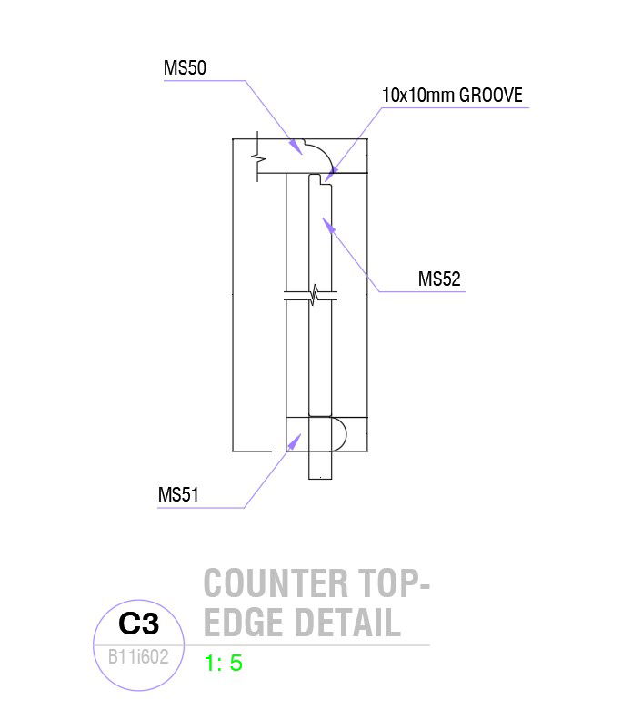 Counter top-edge detail in AutoCAD 2D drawing, dwg file, CAD file