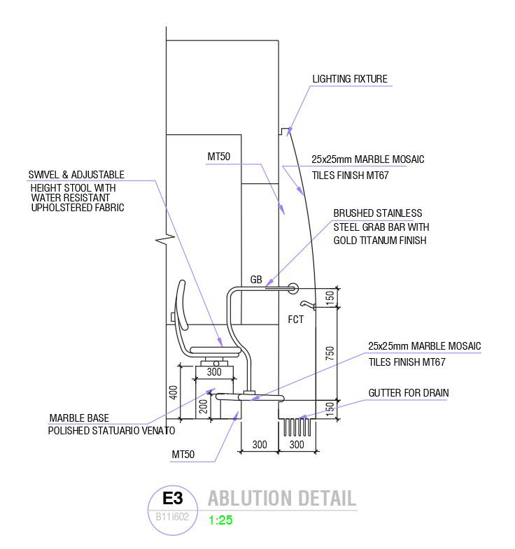 Ablution detail in AutoCAD 2D drawing, dwg file, CAD file