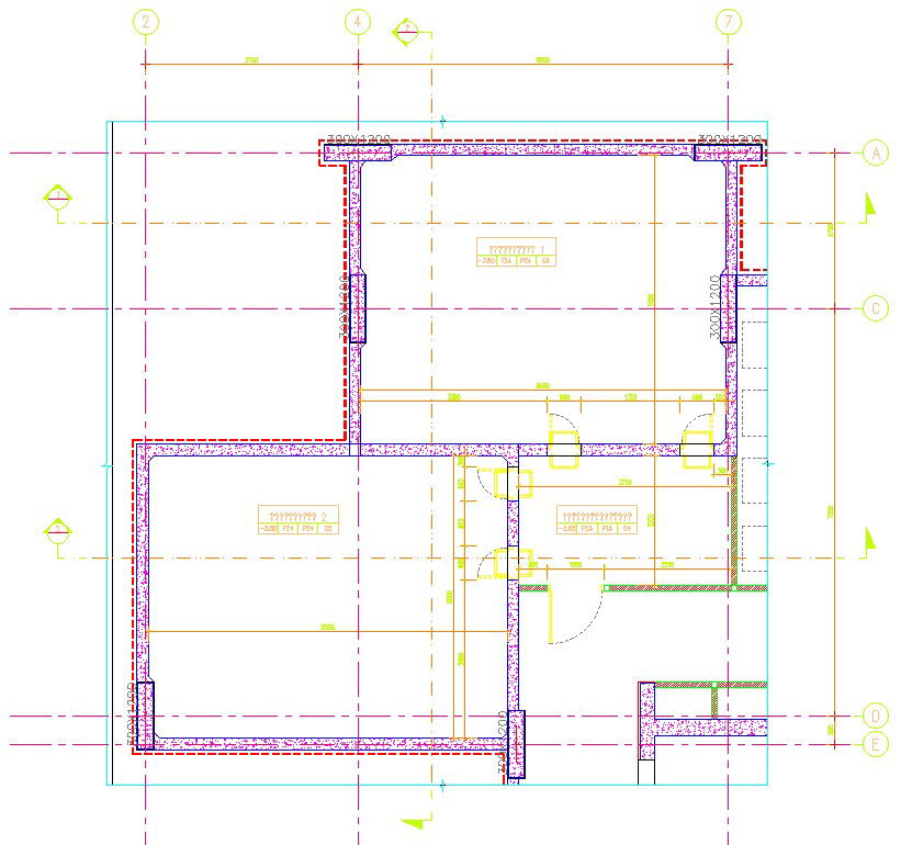 This Architectural Drawing is AutoCAD 2d drawing of Structure planning of walls in AutoCAD, dwg file. A structural or load-bearing wall is a wall that carries a significant portion of the weight of the building's structure, from the roof and the upper floors down to the foundations. These walls keep your house standing, and careless removal of them would lead to severe structural damage, even collapse.