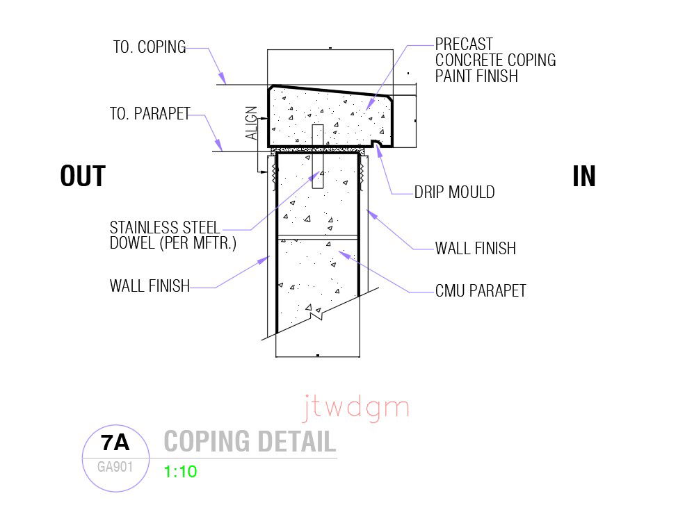 Coping detail in AutoCAD 2D drawing, dwg file, CAD file