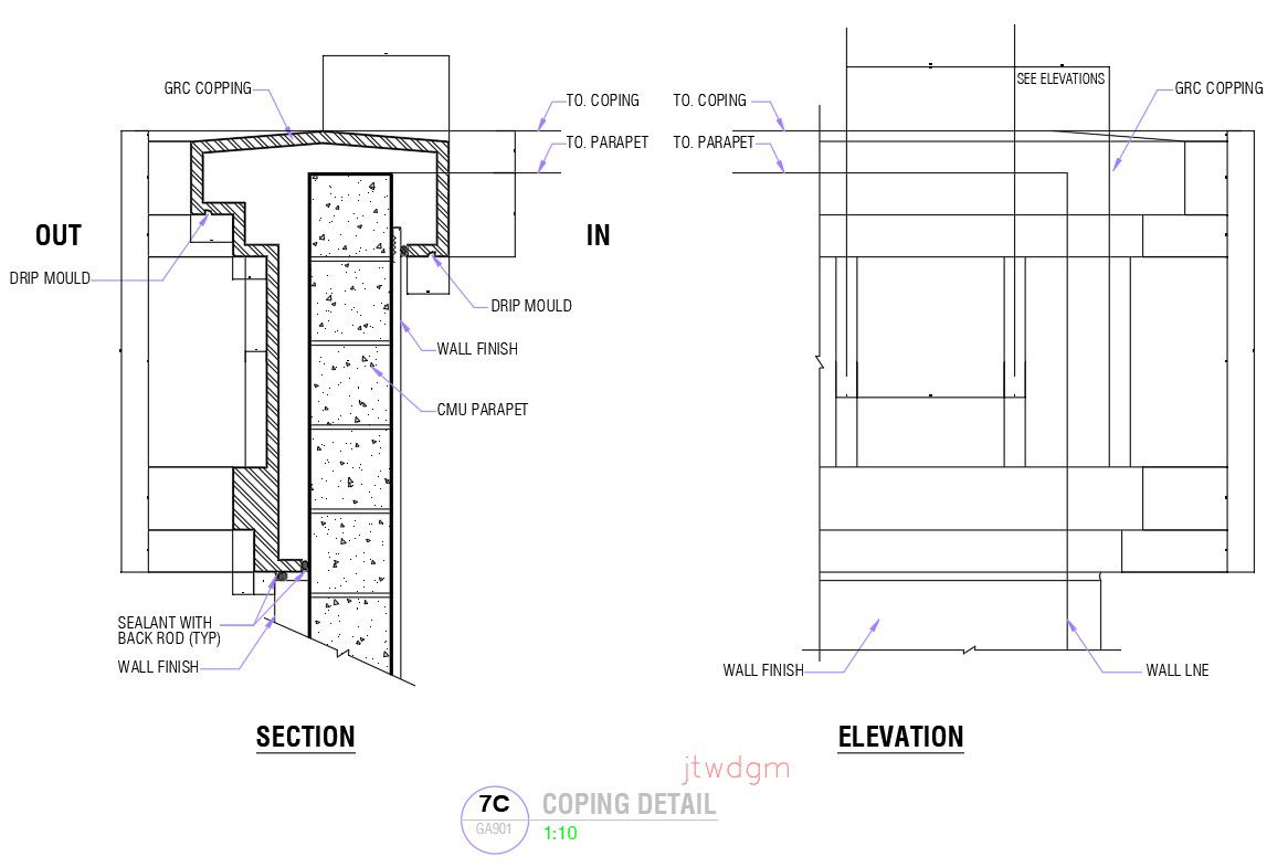 This architectural drawing is a Section and elevation of coping in detail AutoCAD 2D drawing, dwg file, CAD file. Coping is the covering or capping of the wall that doesn't allow water to enter the wall. Coping always has a slope that drains water collected as a result of rainfall. For more details and Information download the drawing file. Thank you for visiting our website cadbull.com.