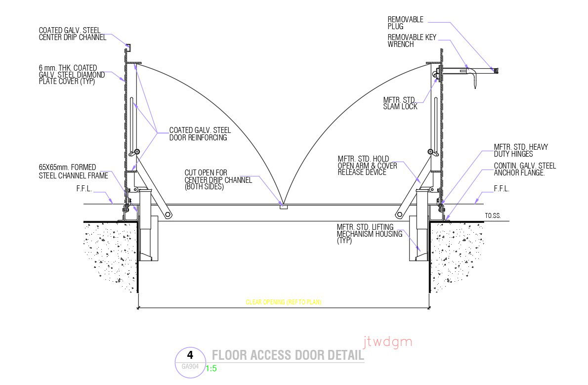 Floor access door detail in AutoCAD 2D drawing, dwg file, CAD file