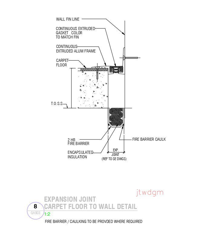 This architectural drawing is an Expansion joint Carpet floor to wall detail in AutoCAD 2D drawing, dwg file, and CAD file. For more details and Information download the drawing file. Thank you for visiting our website cadbull.com.