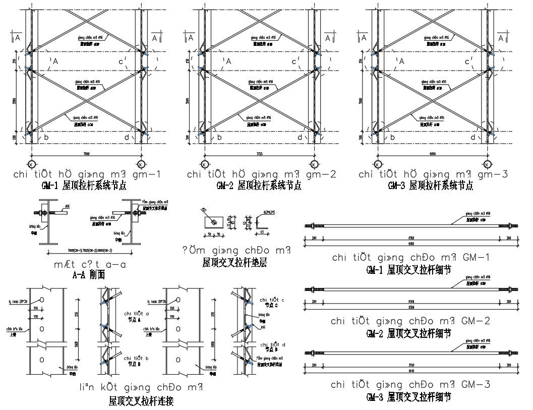 Roof Tension Rod System Node details in AutoCAD, dwg file.