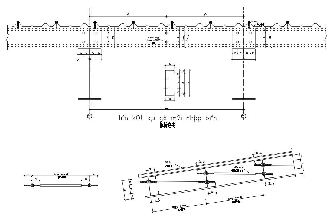 Purlin bridge details of connection in AutoCAD, dwg file.