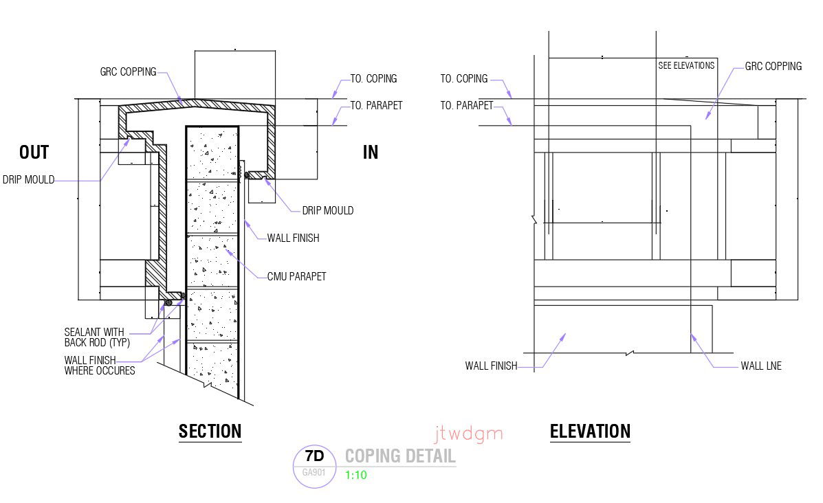 This architectural drawing is the 2D drawing of the section and elevation of coping detail in AutoCAD, CAD file, and dwg file. For more details and information download the drawing file. Thank you for visiting our website Cadbull.com.