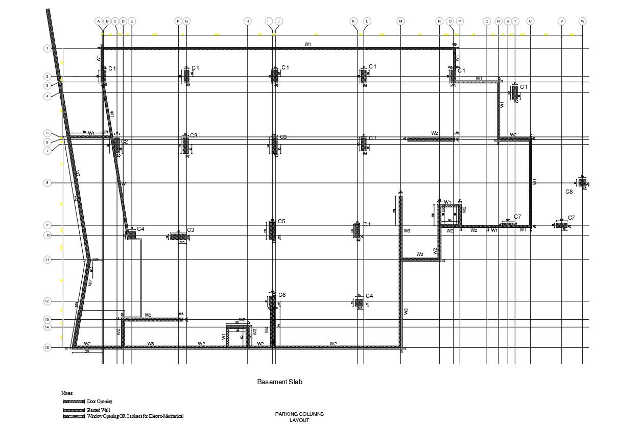 Basement slab details in AutoCAD, dwg file.