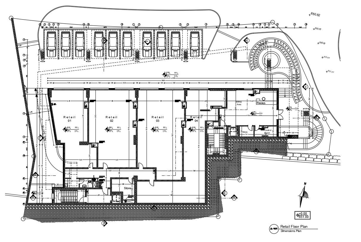 This Architectural Drawing is AutoCAD 2d drawing of Architectural plan of retail complex in AutoCAD, dwg file.