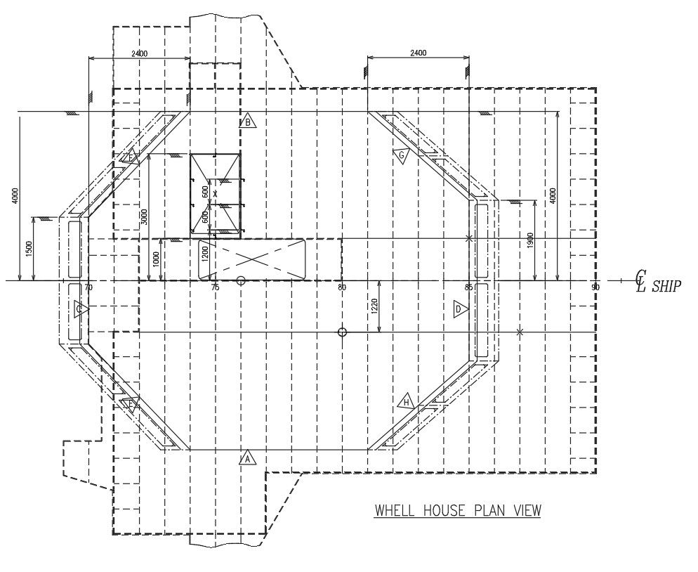 This Architectural Drawing is AutoCAD 2d drawing of Wheel house plan view in AutoCAD, dwg file. A wheelhouse is a small room or shelter on a ship or boat, where the wheel used for steering the boat is situated.