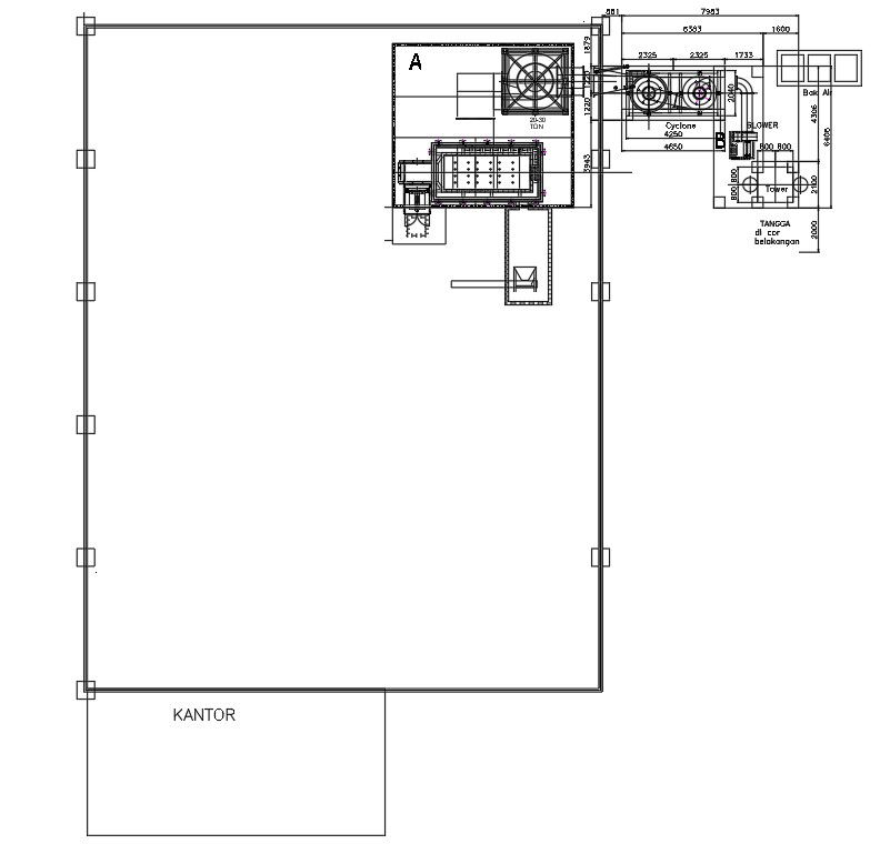 Detailed plan of incinerator factory in AutoCAD 2D drawing, dwg file, CAD file