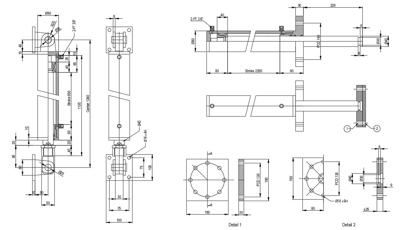 Hydraulic pusher and hydraulic feeder design in AutoCAD 2D drawing, CAD file, dwg file