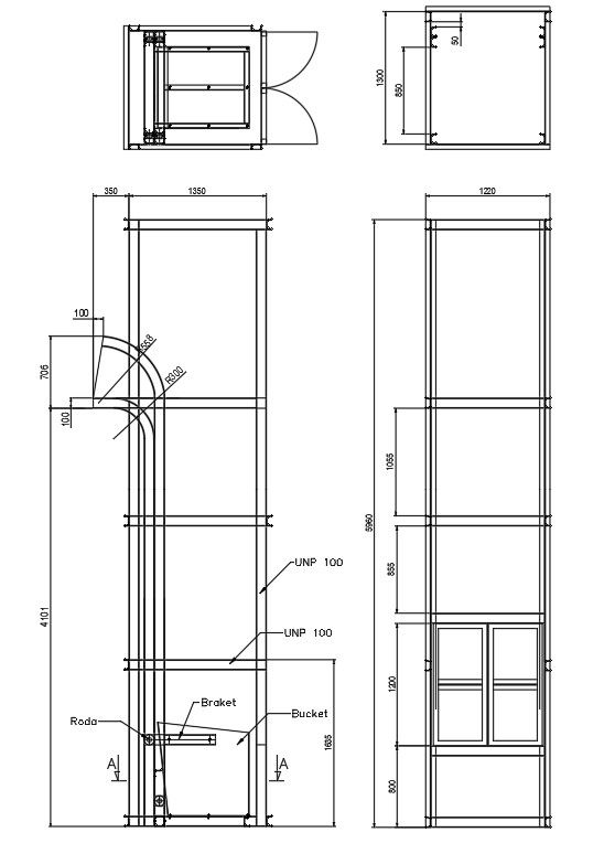Bucket and tower details of the incinerator in detail AutoCAD 2D drawing, dwg file, CAD file
