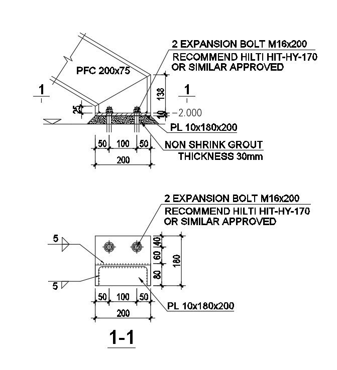 Detail 1 of front end platform stair details design in AutoCAD 2D drawing, CAD file, dwg file