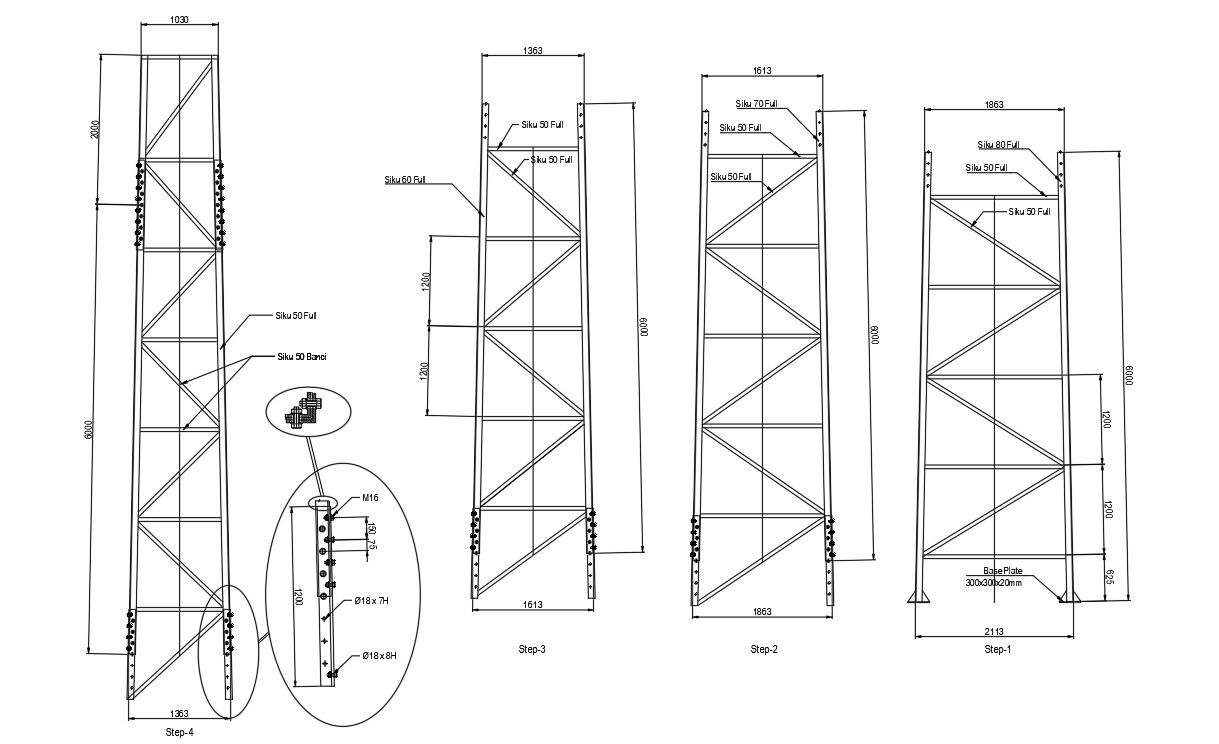 This architectural drawing is a Scaffolding design with detail AutoCAD 2D drawing, CAD file, and dwg file. In this drawing, there were bolt details, base plate details, etc. given. For more details and information download the drawing file. Thank you for visiting our website cadbull.com.