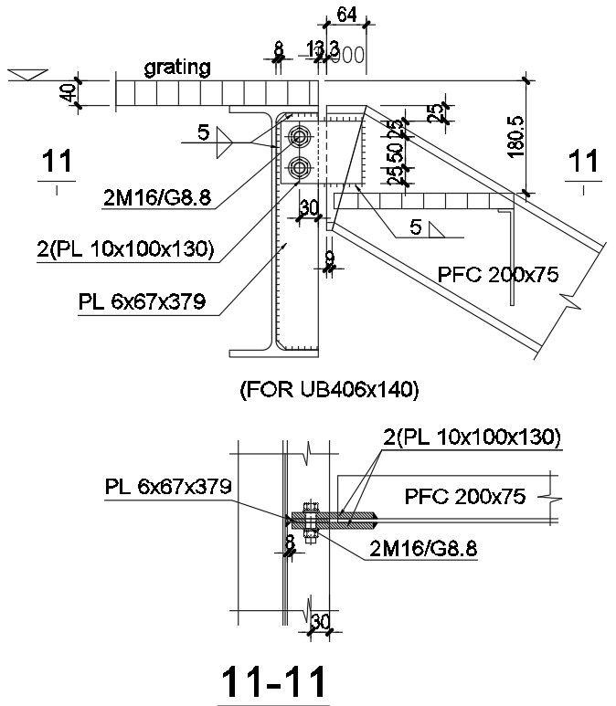 This architectural drawing is an AutoCAD 2D drawing of steel plate, bolt and grating panel details, CAD file, dwg file. For more details and information download the drawing file. Thank you for visiting our website cadbull.com.