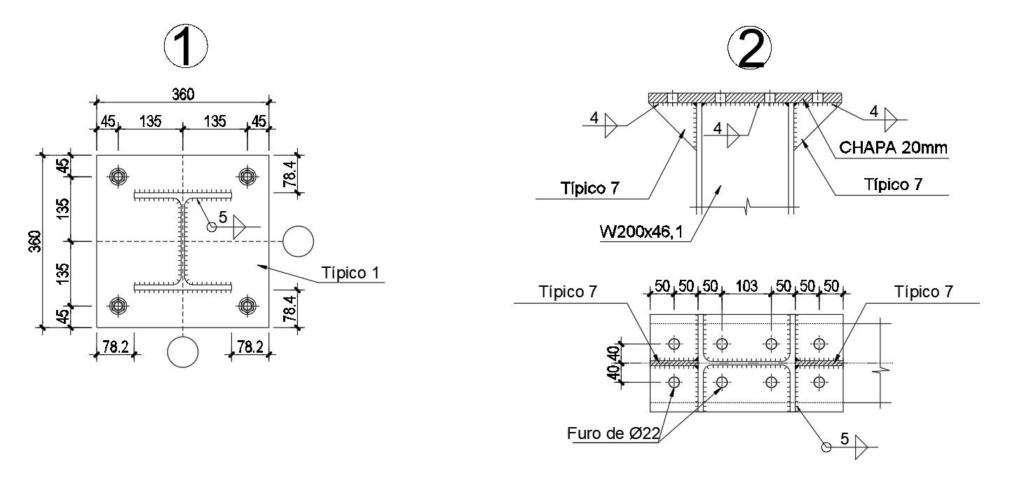 This architectural drawing is an AutoCAD 2D design of steel plate with anchor bolt details, CAD file, and dwg file. For more details and information download the drawing file. Thank you for visiting our website cadbull.com.
