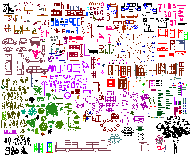 This Miscellaneous AutoCAD DWG file contains an extensive library of 2D CAD blocks, including furniture, human figures, trees, windows, doors, and stair designs. The drawing provides a comprehensive collection of elements that can be directly used in architectural, interior, and landscape design projects. Each block is precisely drafted to scale, ensuring compatibility with professional CAD drawings for residential, commercial, and urban projects. The file helps architects and designers enhance their drawing productivity by offering pre-built components ready for layout integration.