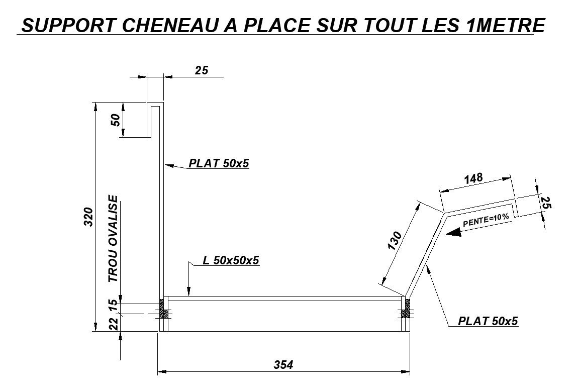 Gutter support on every 1 meter in detail AutoCAD 2D drawing, CAD file, dwg file