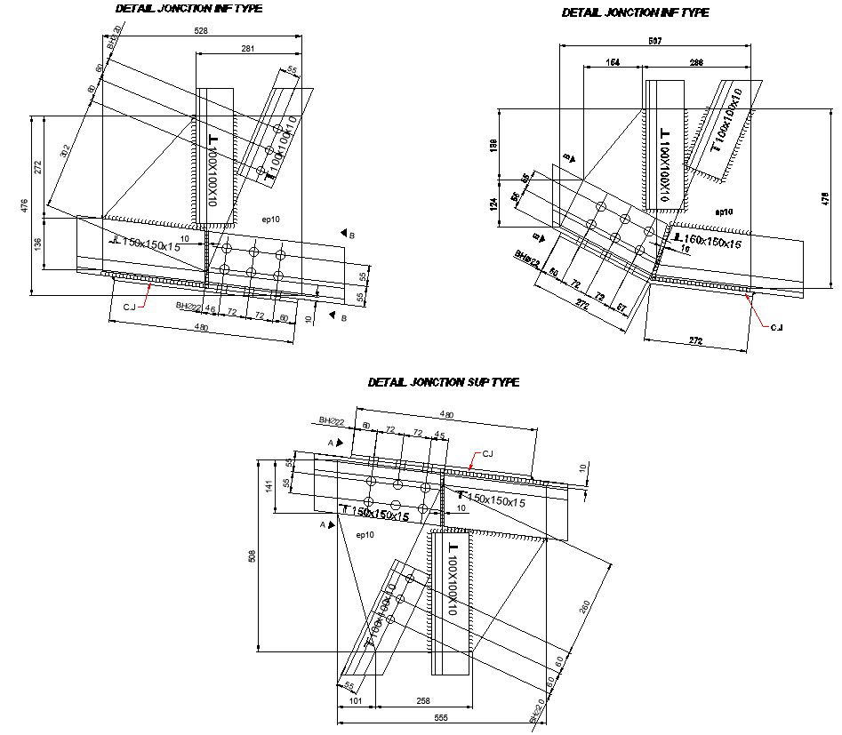 Lower junction detail design in AutoCAD 2D drawing, CAD file, dwg file