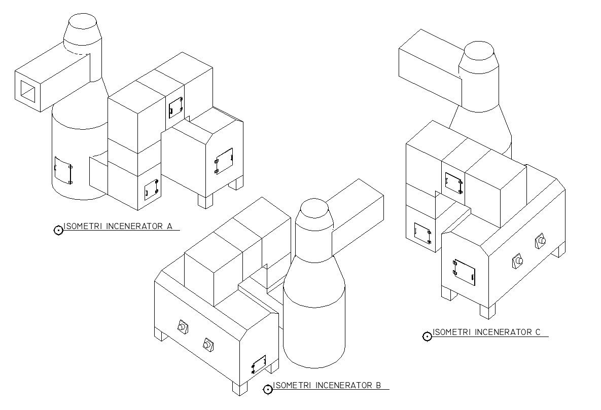 Isometric view of incinerator machine in detail AutoCAD 2D drawing, CAD file, dwg file