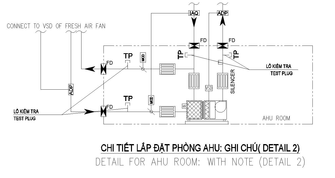 Detail design of air handling unit room in AutoCAD 2D drawing, CAD file, dwg file