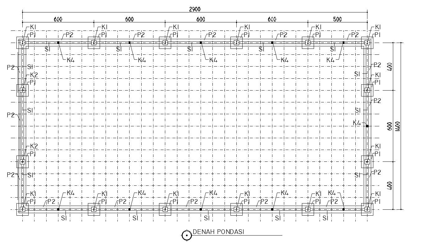 Foundation plan of the structure in detail AutoCAD 2D drawing, CAD file, dwg file