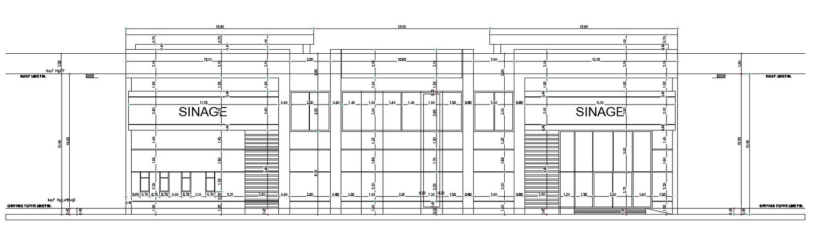2D design of north side elevation of the sports club with dimensions in detail AutoCAD drawing, CAD file, dwg file