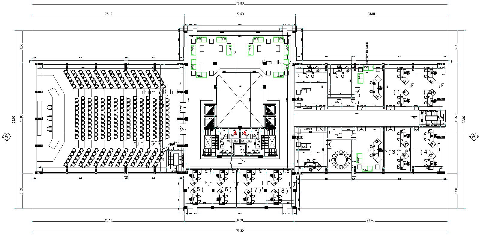 First floor plan of resort hotel building in detail AutoCAD 2D drawing, CAD file, dwg file