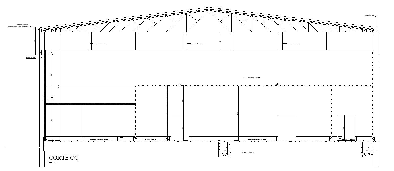 This architectural drawing is Cross section C-C of the incinerator plant factory in AutoCAD 2D drawing, CAD file, dwg file. In this drawing, there were truss details, slab details, wall details, footing details, etc. given. For more details and information download the drawing file. Thank you for visiting our website cadbull.com.
