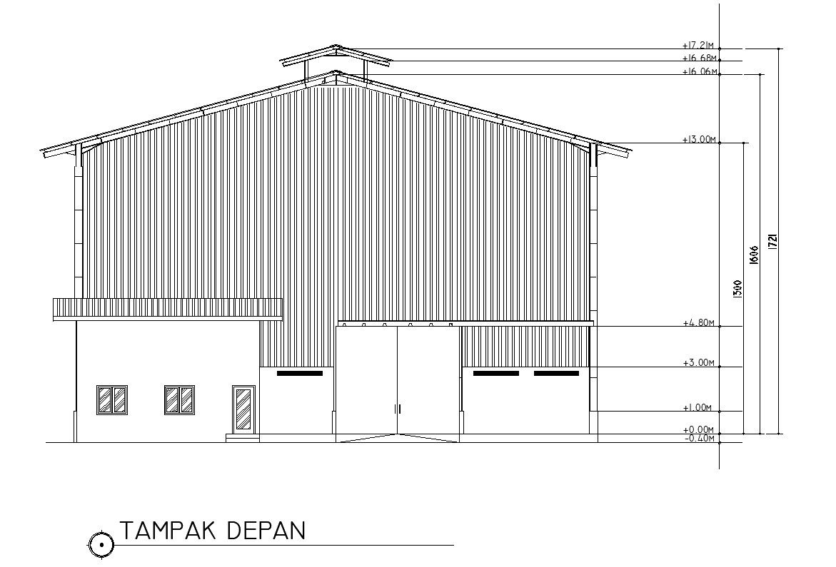 This architectural drawing is a Front view of the factory with dimensions and details in AutoCAD 2D drawing, CAD file, and dwg file. For more details and information download the drawing file. Thank you for visiting our website cadbull.com.