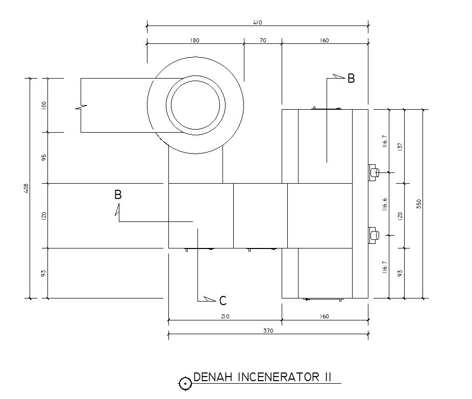 Incinerator plant design with dimensions and details in AutoCAD 2D drawing, CAD file, dwg file