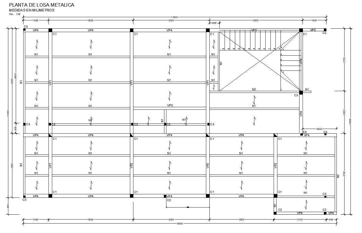 Metallic slab plan with dimensions and details in AutoCAD 2D drawing, CAD file, dwg file