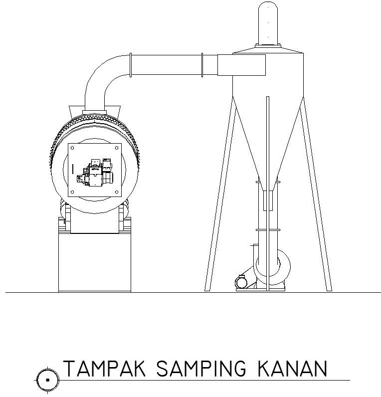 2D design of right side view of incinerator machine in AutoCAD drawing, CAD file, dwg file