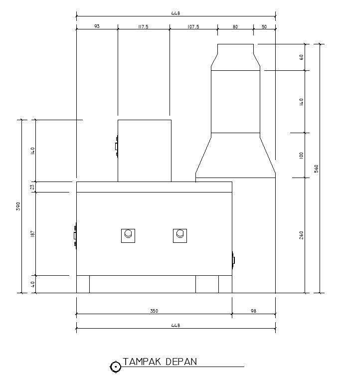 2D design of front view of the incinerator machine in AutoCAD drawing, CAD file, dwg file