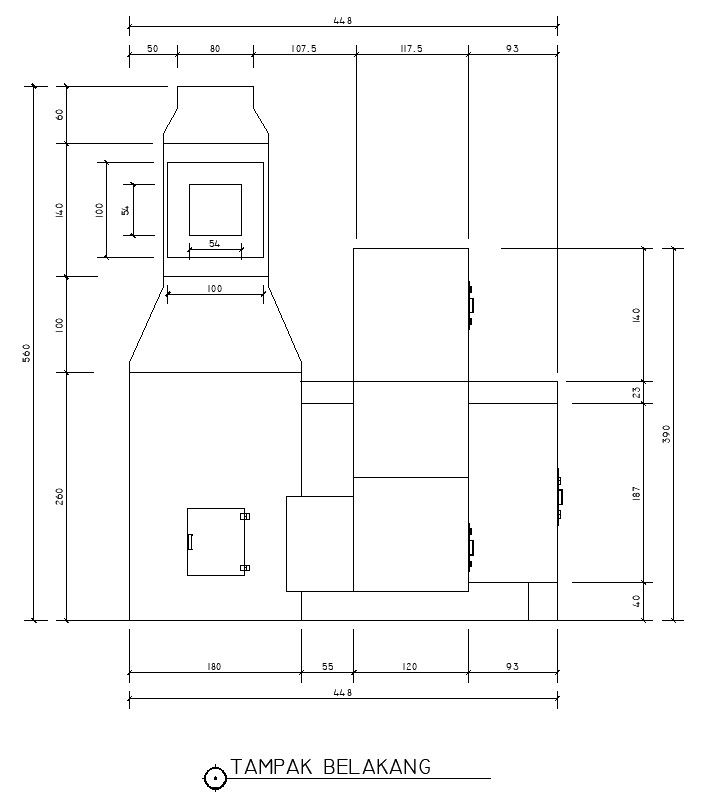 2D design of back side view of incinerator machine in detail AutoCAD drawing, CAD file, dwg file