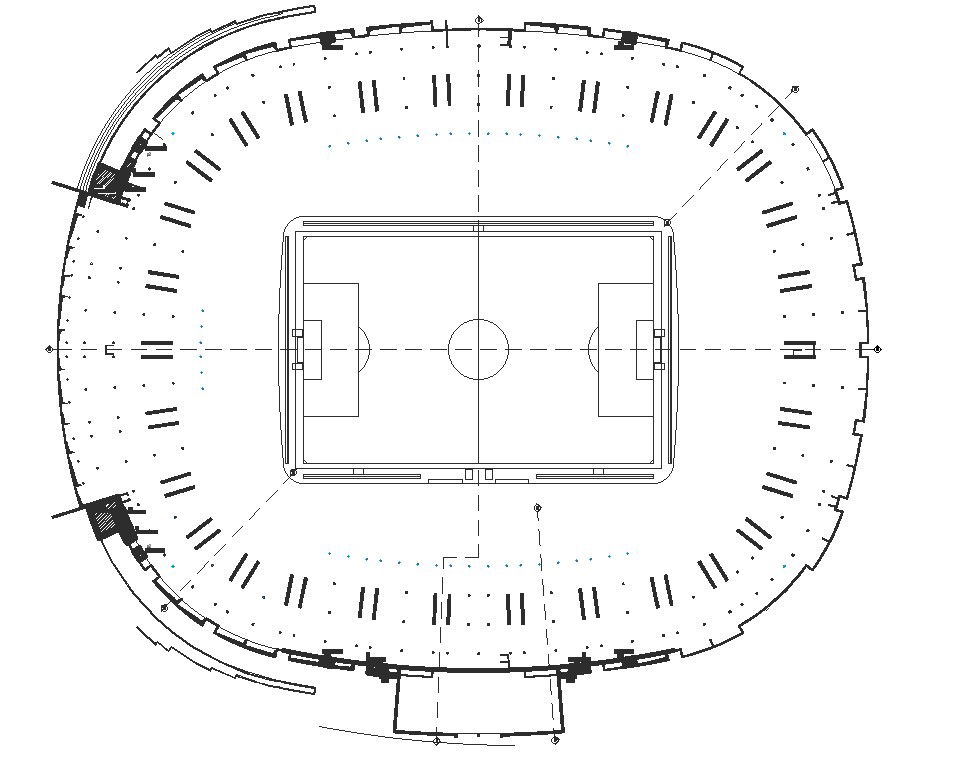 2D design of football stadium with column details in AutoCAD drawing, CAD file, dwg file