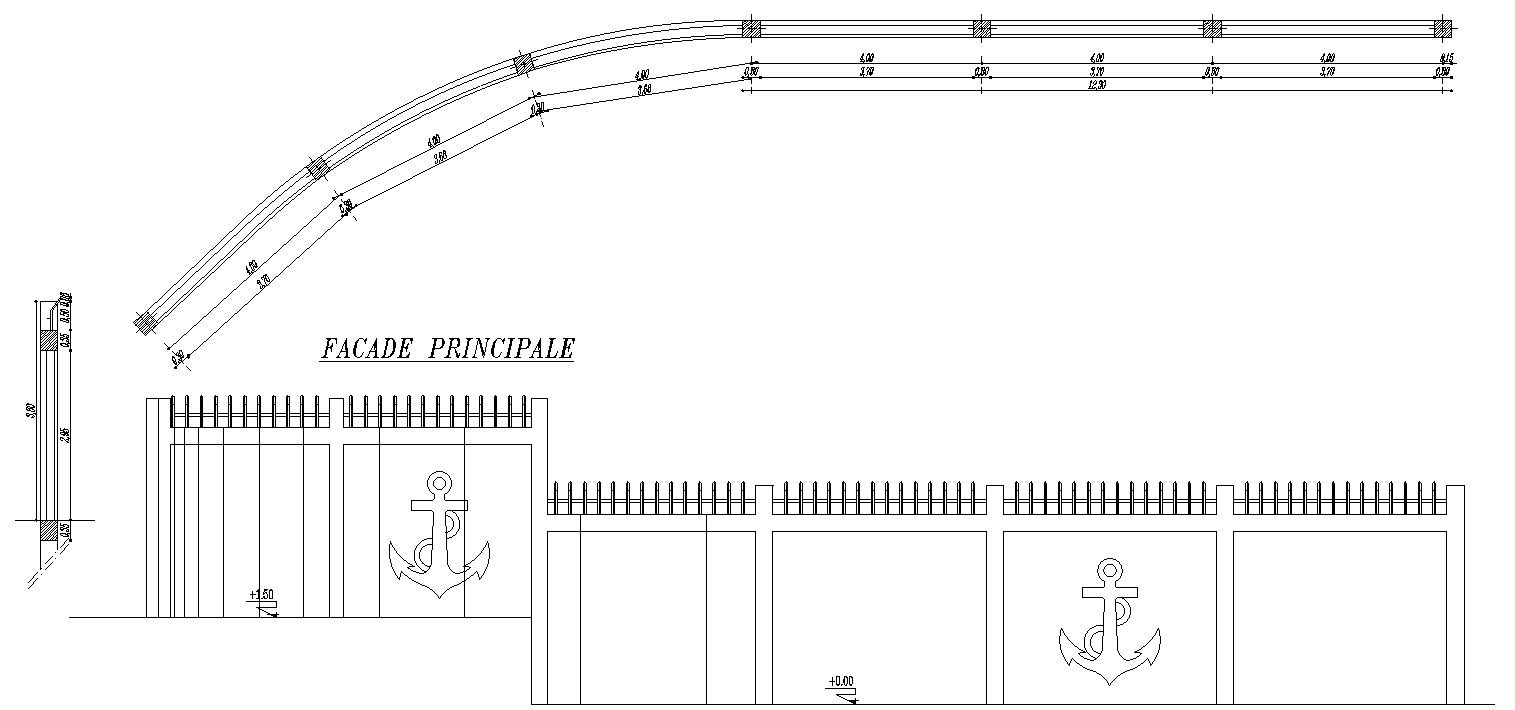 Outer wall section and elevation design in detail AutoCAD 2D drawing, CAD file, dwg file