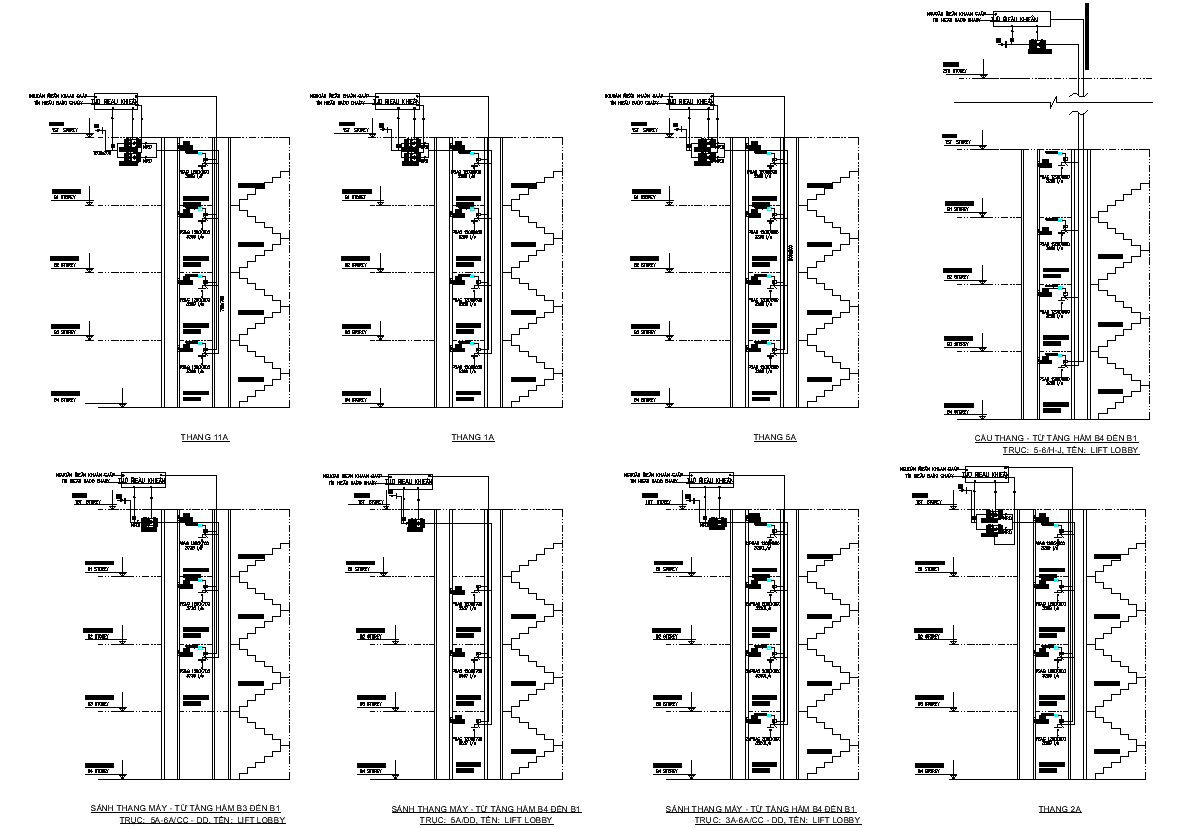 Cross section of Different floors staircase in detail AutoCAD 2D drawing, CAD file, dwg file