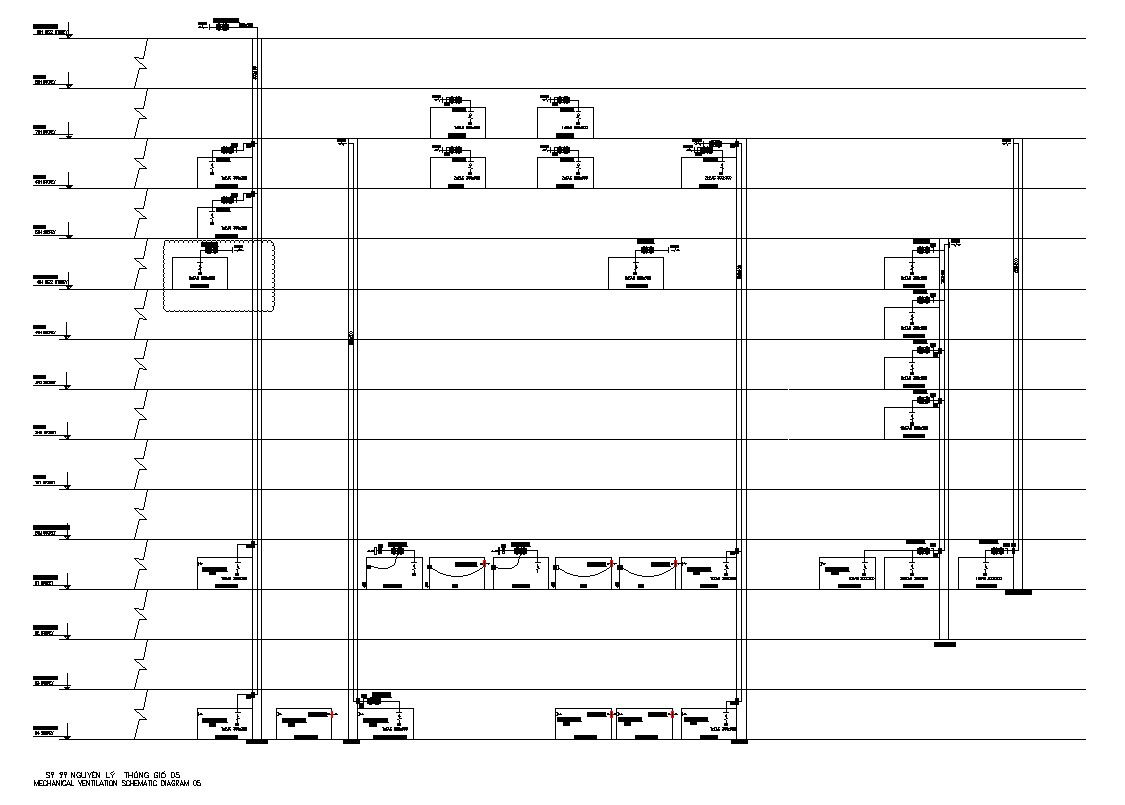 2D design of mechanical ventilation schematic diagram in detail AutoCAD drawing, CAD file, dwg file