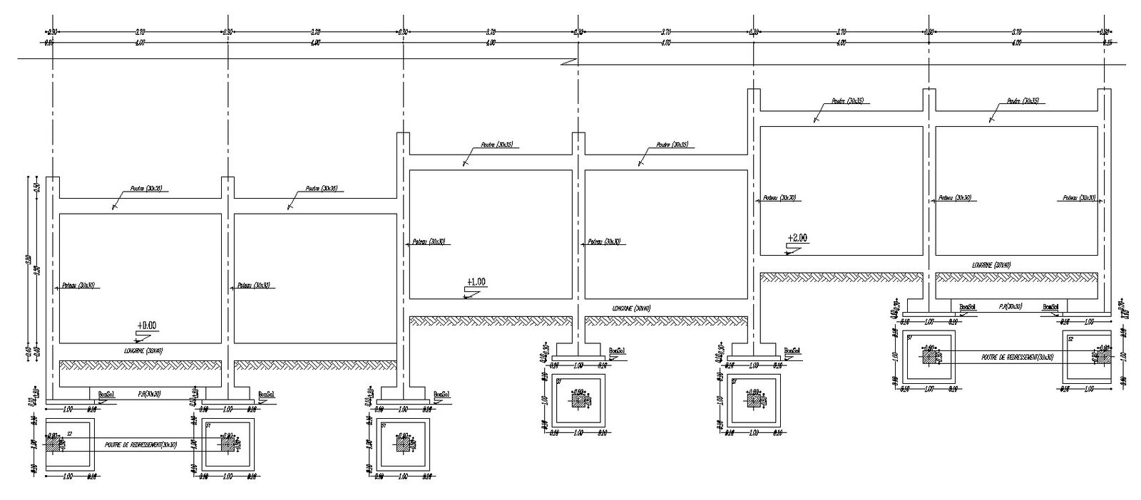 2D drawing of different foundation details in AutoCAD design, CAD file, dwg file