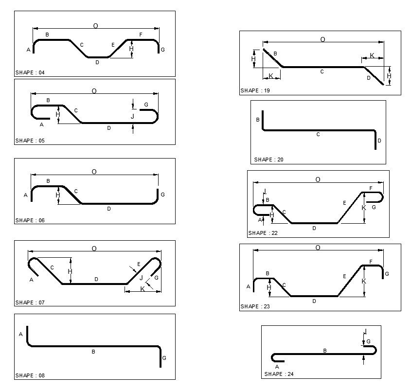 This architectural drawing is 2D design of different shape of reinforcement in detail AutoCAD drawing, CAD file, dwg file. For more details and information download the drawing file. Thank you for visiting our website cadbull.com.