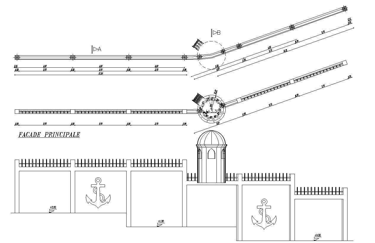 AutoCAD design of outer wall section and elevation with details, CAD file, dwg file