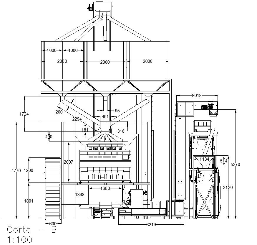 Cross section B of the manufacturing plant in detail AutoCAD 2D drawing, CAD file, dwg file